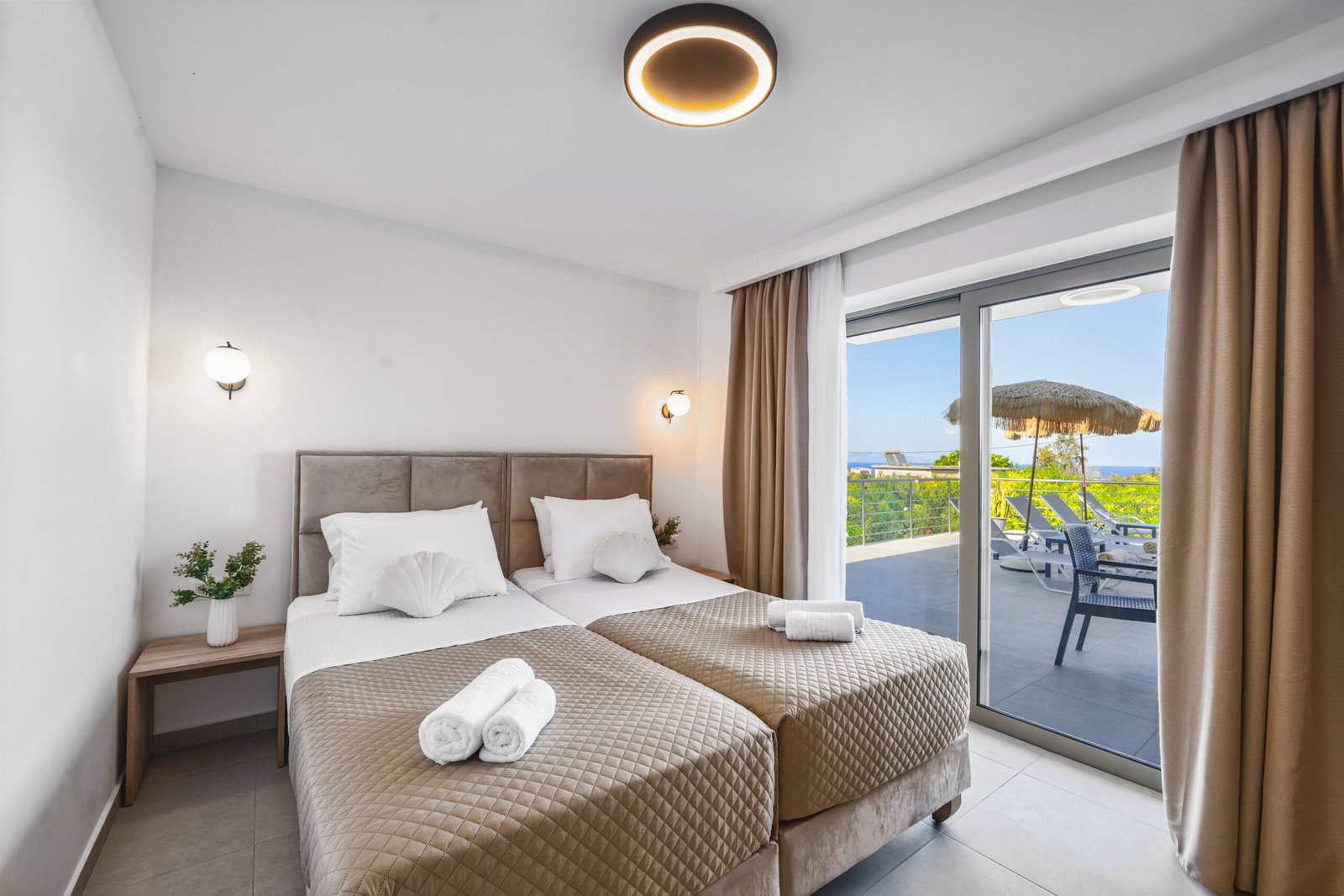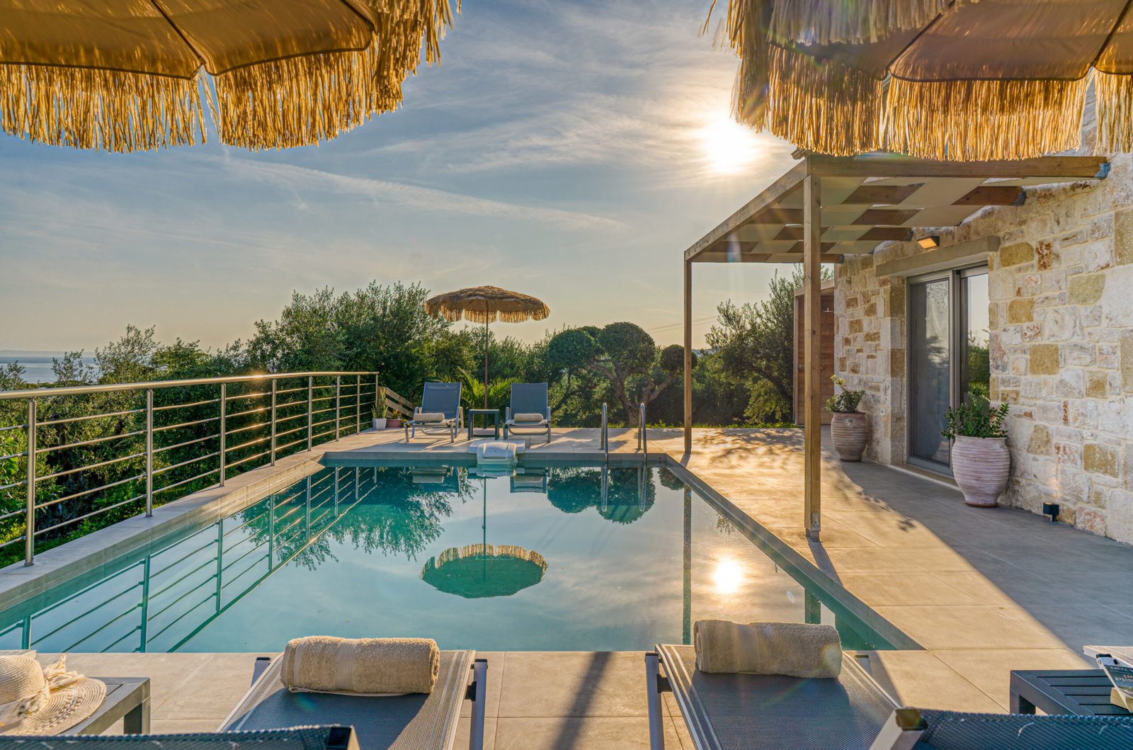 • Private Pool: Gaze at the turquoise waters of our infinity pool set against the backdrop of the Ionian Sea.